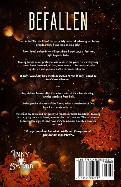 It was a love to burn both their worlds... As darkness begins to fall on Helena, she finds solace and passion in the arms of her mysterious protector, Tomas. I used to be Ellie, the life of the party. My name is Helena, given by my grandparents. I was their shining light. I now seek solace in the village where I grew up, as I feel the light begin to fade. Having Tomas as my protector was never in the plan. He is everything I never knew I needed, all that I ever wanted...the only man who ignites my passion, just as the darkness takes over. If only I could say how much he means to me. If only I could be in his arms forever. They call me Tomas, after the patron saint of their human village. I am the last thing from holy. I belong to the shadows of the forest. After a cruel twist of fate, here I am, finally with her. Helena is my dawn and my dusk; the reason my black blood runs burning hot, why my immortal heart beats louder than thunder. She has always been mine to protect...and, now, mine to possess as only a creature as I could. If only I could tell her what I really am. If only I could give her my own eternity. 'Befallen' is a dual POV star-crossed lovers, new adult dark fantasy monster romance and Book 1 of 4 of the Love All Else series. General warnings for mature content. Recommended for mature readers 18+