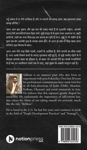 I am neither trained in Urdu nor do I know much about Shayari, just consider it a one-sided love. If you have a command over this language and this art, then I apologize, you may clearly see my weaknesses. I know to what extent some wrong words or superficial flaws spoil the fun of reading, but I am also sure that some couplets will definitely be worthy of your appreciation. So if possible, spend some time with this book. If you, like me, are a lover of only poems and ghazals. You are fond of poetry, but have not met many good writers, then I hope that this book gives you the courage to travel, the journey that takes you from these raw paths of mine to those magnificent roads, where the real magicians of words live.