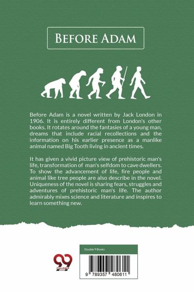 Before Adam is a novel written by Jack London in 1906. It is entirely different from London's other books. It rotates around the fantasies of a young man, dreams that include racial recollections and the information on his earlier presence as a manlike animal named Big Tooth living in ancient times. It has given a vivid picture view of prehistoric man's life, transformation of man's selfdom to cave dwellers. To show the advancement of life, fire people and animal like tree people are also describe in the novel. Uniqueness of the novel is sharing fears, struggles and adventures of prehistoric…mehr