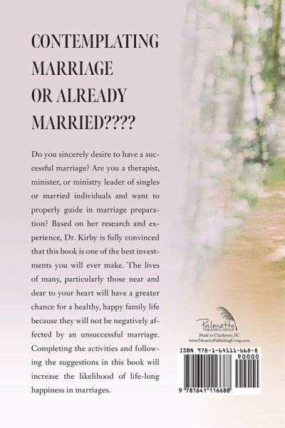 No one marries with the intent of getting a divorce; yet, preparation for marriage is often inadequate. In this guide for building and maintaining a successful marriage, Dr. Kirby will help put your mind at ease as you prepare for life’s most important journey. You will become more aware of what you need to know about marriage before and after you say "I do." You will learn how to select a lifetime partner, what is required to sustain a successful marriage, and how to be a good soul mate, friend, and partner in marriage. Dr. Kirby guides you through the four pillars of building a good marriage: commitment, expectations, communication, and attitude. In addition, you will learn techniques to help manage conflict. The exercises provided in this book will enable you to examine yourself and take responsibility for creating the future you truly desire.