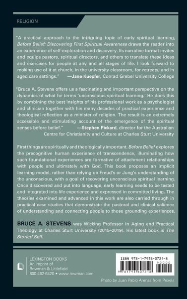 Before Belief explores our first spiritual awareness, before language and cognitive understanding. This unconscious spiritual learning, beginning in infancy, is foundational for a relationship with God. The theoretical approach advanced in this volume is both constructive and pastorally sensitive.