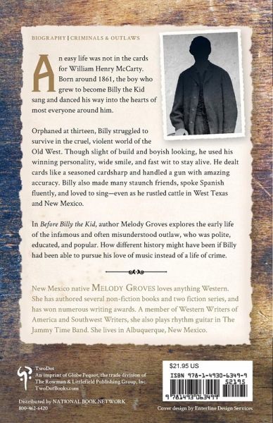 In Before Billy the Kid, author Melody Groves explores the early life of the infamous outlaw, the teenage boy who loved to sing and dance. The young man who was polite, educated, and popular. A boy who had the bad luck to be orphaned at fifteen and left with no one to guide him through life. How different history might have been if Billy had pursued his love of music instead of a life of crime.