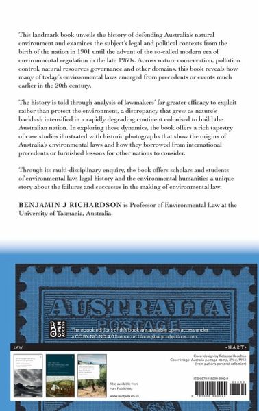 This landmark book unveils the history of defending Australia's natural environment and examines the subject's legal and political contexts from the birth of the nation in 1901 until the advent of the so-called modern era of environmental regulation in the late 1960s. It rejects the mythology that Australia lacked environmental law before the late 1960s in revealing how many of today's environmental laws, from pollution control to nature conservation, emerged from precedents or events much earlier in the 20th century. This history however reveals a discrepancy between lawmakers' greater efficacy to exploit rather than protect the environment, a discrepancy that grew as nature's backlash intensified in a rapidly degrading continent colonised to build the Australian nation. In exploring these dynamics, the book offers a rich tapestry of case studies illustrated with historic photographs that show the origins of Australia's environmental laws and how they borrowed from international precedents or furnished lessons for other nations. Through its multi-disciplinary enquiry, the book offers scholars and students of environmental law, legal history and the environmental humanities a unique story about the failures and successes in the making of environmental law.