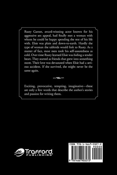 Rusty Garnet, award-winning actor known for his aggressive sex appeal had finally met a woman with whom he could be happy spending the rest of his life with. Elsie was plain and down-to-earth. Hardly the type of woman the tabloids would link to Rusty. As a matter of fact, most men took his self-assuredness as cold. Over time Rusty learned Elsie was hiding a tender heart. They started as friends that grew into something more. Their love was devastated when Elsie had a serious accident. If she survived, she might never be the same again.