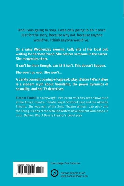 Eleanor Tindall is a playwright. Her recent work has been showcased at the Arcola Theatre, Theatre Royal Stratford East and the Almeida. She was part of the Soho Theatre Writers Lab 16-17 and the Young Friends of the Almeida Writers Development Workshops in 2015.