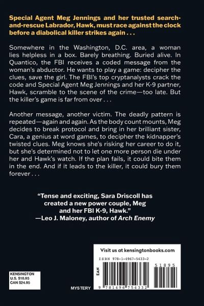 Special Agent Meg Jennings and her trusted search-and-rescue Labrador, Hawk, must race against the clock before a diabolical killer strikes again . . . >Another message, another victim. The deadly pattern is repeated--again and again. As the body count mounts, Meg decides to break protocol and bring in her brilliant sister, Cara, a genius at word games, to decipher the kidnapper's twisted clues. Meg knows she's risking her career to do it, but she's determined not to let one more person die under her and Hawk's watch. If the plan fails, it could bite them in the end. And if it leads to the killer, it could bury them forever . . .