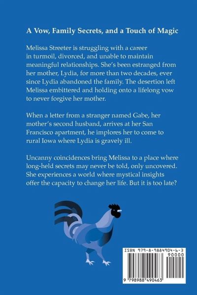 A Vow, Family Secrets, and a Touch of Magic Melissa Streeter is divorced, struggling with a career in turmoil, and unable to maintain meaningful relationships. She's been estranged from her mother, Lydia, for more than two decades, ever since Lydia abandoned the family. The desertion left Melissa embittered and holding onto a lifelong vow to never forgive her mother. When a letter from a stranger named Gabe, her mother's second husband, arrives at her San Francisco apartment, he implores her to come to Iowa where Lydia is gravely ill. Uncanny coincidences bring Melissa to a place where long-held secrets may never be told, only uncovered. She experiences a world where mystical insights offer the capacity to change her life. But it is too late?