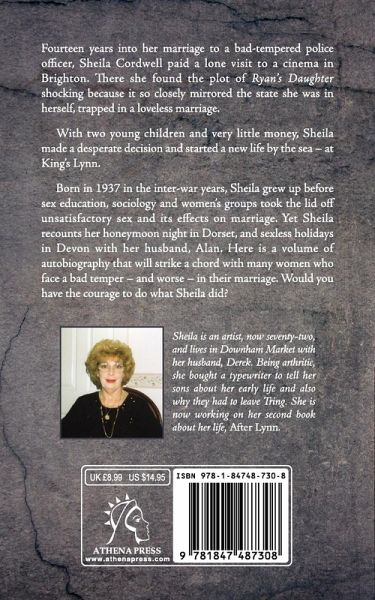Fourteen years into her marriage to a bad-tempered police officer, Sheila Cordwell paid a lone visit to a cinema in Brighton. There she found the plot of Ryan's Daughter shocking because it so closely mirrored the state she was in herself, trapped in a loveless marriage. With two young children and very little money, Sheila made a desperate decision and started a new life by the sea - at King's Lynn. Born in 1937 in the inter-war years, Sheila grew up before sex education, sociology and women's groups took the lid off unsatisfactory sex and its effects on marriage. Yet Sheila recounts her honeymoon night in Dorset, and sexless holidays in Devon with her husband, Alan. Here is a volume of autobiography that will strike a chord with many women who face a bad temper - and worse - in their marriage. Would you have the courage to do what Sheila did? Sheila is an artist, now seventy-two, and lives in Downham Market with her husband, Derek. Being arthritic, she bought a typewriter to tell her sons about her early life and also why they had to leave Tring. She is now working on her second book about her life, After Lynn.