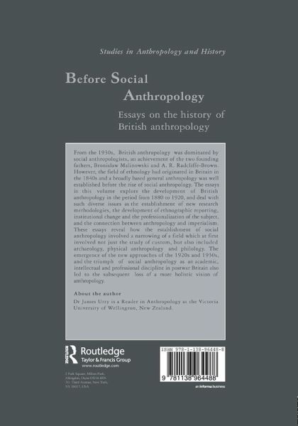 First Published in 1993. From the 1930s, British anthropology was dominated by social anthropologists, an achievement of the two founding fathers, Bronislaw Malinowski and A.R. Radcliffe-Brown. However, the field of ethnology had originated in Britain in the 1840s and a broadly based general anthropology was well established before the rise of social anthropology. The essays in this volume explore the development of British anthropology in the period from 1880 to 1920 and deal with such diverse issues as the establishment of new research methodologies, the development of ethnographic reporting, institutional change and the professionalization of the subject, and the connection between anthropology and imperialism. These essays reveal how the establishment of social anthropology involved a narrowing field which at first involved not just the study of custom but also included archaeology, physical anthropology and philology. The emergence of the new approaches of the 1920s and 1930s, and the triumph of social anthropology as an academic, intellectual and professional discipline in post-war Britain also led to the subsequent loss of a more holistic vision of anthropology.