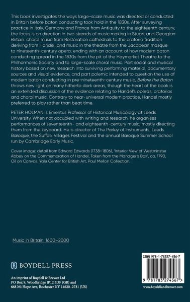 This book investigates the ways large-scale music was directed or conducted in Britain before baton conducting took hold in the 1830s. After surveying practice in Italy, Germany and France from Antiquity to the eighteenth century, the focus is on direction in two strands of music making in Stuart and Georgian Britain: choral music from Restoration cathedrals to the oratorio tradition deriving from Handel, and music in the theatre from the Jacobean masque to nineteenth-century opera, ending with an account of how modern baton conducting spread in the 1830s from the pit of the Haymarket Theatre to the Philharmonic Society and to large-scale choral music. Part social and musical history based on new research into surviving performing material, documentary sources and visual evidence, and part polemic intended to question the use of modern baton conducting in pre-nineteenth-century music, Before the Baton throws new light on many hitherto dark areas, though the heart of the book is an extended discussion of the evidence relating to Handel's operas, oratorios and choral music. Contrary to near-universal modern practice, he mostly preferred to play rather than beat time. PETER HOLMAN is Emeritus Professor of Historical Musicology at Leeds University. When not occupied with writing and research, he organises performances of seventeenth- and eighteenth-century music, mostly directing them from the keyboard. He is director of The Parley of Instruments, Leeds Baroque, the Suffolk Villages Festival and the annual Baroque Summer School run by Cambridge Early Music.
