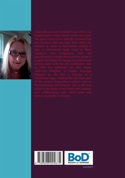 Diana Mistera born in Rome 07.02.1972;i s an English/Italian Gothic/fiction writer and poet.She spent much of her early life between Italy and England until the year 2003 when she decided to move to Finland.She studied in Italy at L'Universitá degli Studi di Siena Literature and Languages, with the specialization in Anglo-American.She writes in English and Italian. She began her professional writing career with the self- publication, and, in 2006 she published her first Poetry collection, Wingless, in English language followed by the first 2 volumes of a Paranormal saga: Orpheus.She has been part of the several Multicultural project such as Runokohraiksia and Sivuvalo. She is still very active in the Multicultural fields with readings and collaborations with other poets and writers, especially in Helsinki.
