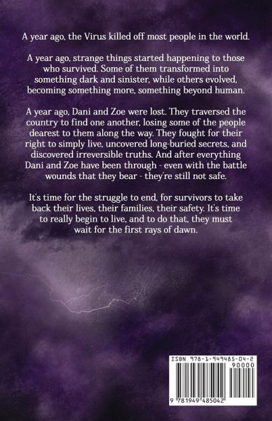 THE FOURTH AND FINAL BOOK IN THE ENDING SERIES. A year ago, the Virus killed off most people in the world. A year ago, strange things started happening to those who survived. Some of them transformed into something dark and sinister, while others evolved, becoming something more, something beyond human. A year ago, Dani and Zoe were lost. They traversed the country to find one another, losing some of the people dearest to them along the way. They fought for their right to simply live, uncovered long-buried secrets, and discovered irreversible truths. And after everything Dani and Zoe have been through—even with the battle wounds that they bear—they’re still not safe. It’s time for the struggling to end, for survivors to take back their lives, their families, their safety. It’s time to really begin to live, and to do that, they must wait for the first rays of dawn. THE ENDING SERIES After The Ending Into The Fire Out Of The Ashes Before The Dawn Beginnings: The Ending Series Prequel Novellas World Before: A Collection of Stories