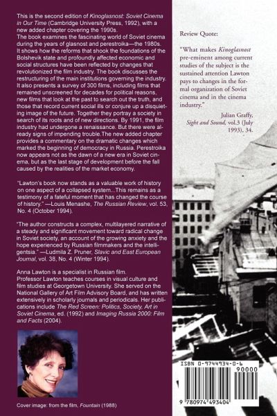 This is an expanded edition of Kinoglasnost: Soviet Cinema in Our Time. The book examines the fascinating world of Soviet cinema during the years of glasnost and perestroika-the 1980s. It shows how the reforms that shook the foundations of the Bolshevik state and affected economic and social structures have been reflected in the film industry. A new added chapter provides a commentary on the dramatic changes that marked the beginning of democracy in Russia. This book will be widely read by students and specialists of Soviet/Russian history, culture and society, and film studies, as well as by anyone with an interest in the transformations of Russian society. "What makes Kinoglasnost pre-eminent among current studies of the subject is the sustained attention Lawton pays to changes in the formal organization of Soviet cinema and in the cinema industry." - Julian Graffy, Sight and Sound, vol. 3 (July 1993) "Lawton's book now stands as a valuable work of history on one aspect of a collapsed system...This remains as a testimony of a fateful moment that has changed the course of history." - Louis Menashe, The Russian Review, vol.53, No.4 (October 1994). "The author constructs a complex, multilayered narrative of a steady and significant movement toward radical change in Soviet society, an account of the growing anxiety and the hope experienced by Russian filmmakers and the intelligentsia." - Ludmila Z. Pruner, Slavic and East European Journal, vol.38, No.4 (Winter 1994).