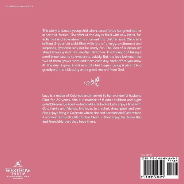 This story is about a young child who is cared for by her grandmother in her mid-forties. The start of the day is filled with new ideas, fun activities and adventure the moment the child arrives. Chloe is a brilliant 3-year old child filled with lots of energy, excitement and surprises, grandma may not be ready for. The idea of a lemon-aid stand steers grandma in another direction. The thought of taking a small break seems to evaporate quickly. But the love between the two of them grows more and more each day. And before you know it! The day is gone and a new day has begun. Being a parent and grandparent is a blessing and a great reward from God.