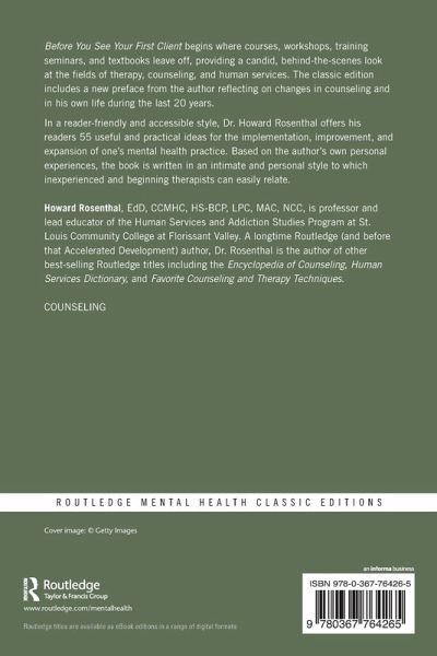 Before You See Your First Client begins where courses, workshops, training seminars, and textbooks leave off, providing a candid, behind-the-scenes look at the fields of therapy, counseling, and human services. The classic edition includes a new preface from the author reflecting on changes in counseling and in his own life during the last 20 years. In a reader-friendly and accessible style, Dr. Howard Rosenthal offers his readers 55 useful and practical ideas for the implementation, improvement, and expansion of one's mental health practice. Based on the author's own personal experiences, the book is written in an intimate and personal style to which inexperienced and beginning therapists can easily relate.