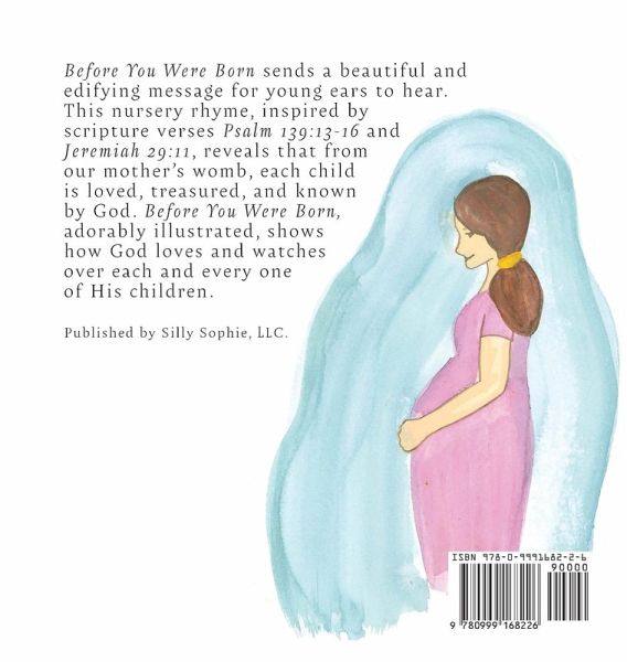 Before You Were Born is a beautiful and edifying message for children to learn how special they are to God. This nursery rhyme, inspired by scripture verses Psalm 139: 13-16 and Jeremiah 29:11, reveals that from our mother's womb, each child is loved, treasured, and known by God. Before You Were Born adorably illustrates how God loves and watches over each and every one of his children.