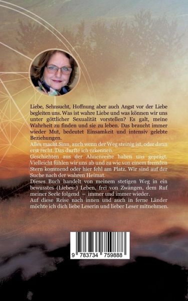 Die Autorin beschreibt ihre vielschichtigen Beziehungen in der Familie, im Geschäftsalltag, inklusive einem erlebten Mobbing und Übergriffen. Sie schreibt über Liebe und Sexualität und wie sie ihre eigenen Grenzen gesprengt hat auf der Suche nach Glück. Offen, selbstkritisch und schonungslos berichtet sie von ihrer Ehe und anderen Liebesbeziehungen und zeigt auf, wie es möglich ist, leidvolle Erlebnisse in wertvolle und spirituelle Erkenntnisse umzuwandeln und dadurch das Leben bewusster zu leben.Sie nimmt den Leser/die Leserin mit auf Reisen durch ihr Leben und in ferne Länder, auf eine sehr persönliche bis intime Art und Weise.Das Buch dürfte einige erhellende Antworten bieten, zum Nachdenken und zu mehr Selbstliebe anregen.Ihr Bestreben ist es, andere Menschen zu ermutigen, der inneren Stimme zu folgen.