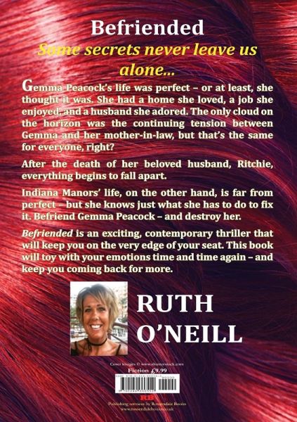 Some secrets never leave us alone... Gemma Peacock's life was perfect - or at least, she thought it was. She had a home she loved, a job she enjoyed, and a husband she adored. The only cloud on the horizon was the continuing tension between Gemma and her mother-in-law, but that's the same for everyone, right? After the death of her beloved husband, Ritchie, everything begins to fall apart. Indiana Manors' life, on the other hand, is far from perfect - but she knows just what she has to do to fix it. Befriend Gemma Peacock - and destroy her. Befriended is an exciting, contemporary thriller that will keep you on the very edge of your seat. This book will toy with your emotions time and time again - and keep you coming back for more.