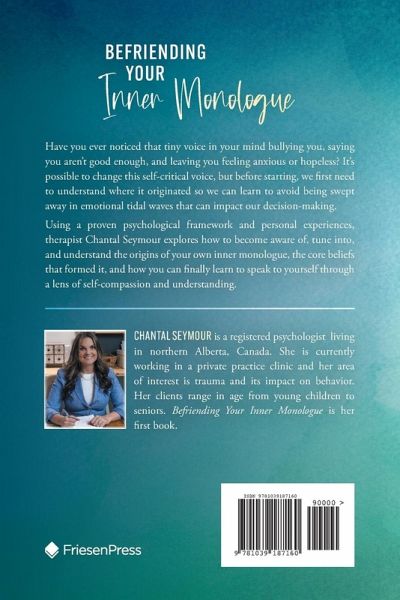 Have you ever noticed that tiny voice in your mind bullying you, saying you aren't good enough, and leaving you feeling anxious or hopeless? It's possible to change this self-critical voice, but before starting, we first need to understand where it originated so we can learn to avoid being swept away in emotional tidal waves that can impact our decision-making. Using a proven psychological framework and personal experiences, therapist Chantal Seymour explores how to become aware of, tune into, and understand the origins of your own inner monologue, the core beliefs that formed it, and how you can finally learn to speak to yourself through a lens of self compassion and understanding.