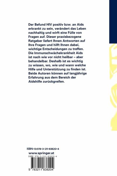 Vorwort: Die Herausforderung annehmen Fakten und Daten - Wie ein Virus die Welt verändert. Eine Chronologie - Entstehungstheorie - Epidemiologie - Funktionsweise des HIV - Übertragungswege - Sexuelle Übertragungsrisiken Diagnose Diagnose: HIV-positiv - Mein Befund ist positiv Therapie - Antiretrovirale Therapie einer HIV-Infektion - Bausteine der antiretroviralen Therapie - Verbesserungen in der Therapie - Kombinationsvarianten - Therapie-Problembereiche - Postexpositionelle Prophylaxe (PEP) - Begleiterkrankungen Betroffene Gruppen - Es liegt an den Männern - Frauen mit HIV/Aids - Kinder - i.v.-Drogenkonsum Psychosoziale, medizinische psychotherapeutische und pflegerische Beratung und Betreuung - Psychosoziale Beratung und Betreuung - Medizinische Beratung und Betreuung - Psychotherapeutische Beratung und Betreuung - Pflegerische Beratung und Betreuung Sozialleistungen - Sozialversicherung/Pflichtversicherung - Sozialhilfe - Privatversicherungen - Bundesweite Regelungen für