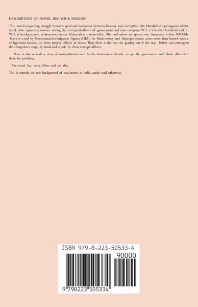 This novel explores the conflict between ethical and corrupt practices, centring around Mr. Muralidhar, the protagonist who embodies integrity in a milieu of corrupt officials within the government coal mining company VCL (Vidarbha Coalfields Ltd.), headquartered in Amaravati city, Maharashtra, India. The coal mines span an area within a 300-kilometer radius of Amaravati. The narrative unfolds as a Government Investigation Agency (GIA) launches a probe into three project officers at the mines for amassing unexplained wealth and assets beyond their known sources of income. The novel delves into their desperate attempts to extricate themselves from this predicament before the case reaches the chargesheet stage, resorting to various unscrupulous means. Additionally, the story interweaves a secondary plot involving manipulations by a business family striving to secure the government coal block allocation for their profit-seeking ventures. Amidst these thematic elements, the novel also explores themes of love and sexuality. This narrative unfolds against the backdrop of India's coal mining industry, a subject seldom explored in literature.