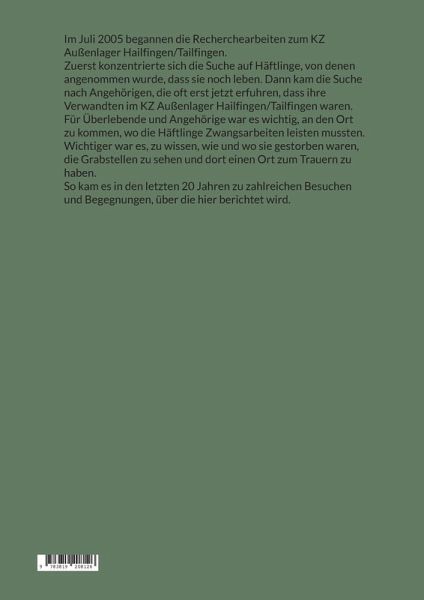 Im Juli 2005 begannen die Recherchearbeiten zum KZ Außenlager Hailfingen/Tailfingen. Zuerst konzentrierte sich die Suche auf Häftlinge, von denen angenommen wurde, dass sie noch leben. Dann kam die Suche nach Angehörigen, die oft erst jetzt erfuhren, dass ihre Verwandten im KZ Außenlager Hailfingen/Tailfingen waren. Für Überlebende und Angehörige war es wichtig, an den Ort zu kommen, wo die Häftlinge Zwangsarbeiten leisten mussten. Wichtiger war es, zu wissen, wie und wo sie gestorben waren, die Grabstellen zu sehen und dort einen Ort zum Trauern zu haben. So kam es in den letzten 20 Jahren zu zahlreichen Besuchen und Begegnungen, über die hier berichtet wird.