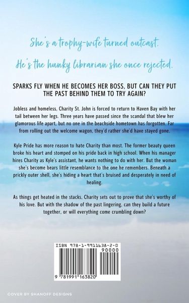 She's a trophy-wife turned outcast. He's the hunky librarian she once rejected. Sparks fly when he becomes her boss, but can they put the past behind them to try again? Jobless and homeless, Charity St. John is forced to return to Haven Bay with her tail between her legs. Three years have passed since the scandal that blew her glamorous life apart, but no one in the beachside hometown has forgotten. Far from rolling out the welcome wagon, they'd rather she'd have stayed gone. Kyle Pride has more reason to hate Charity than most. The former beauty queen broke his heart and stomped on his pride back in high school. When his manager hires Charity as Kyle's assistant, he wants nothing to do with her. But the woman she's become bears little resemblance to the one he remembers. Beneath a prickly outer shell, she's hiding a heart that's bruised and desperately in need of healing. As things get heated in the stacks, Charity sets out to prove that she's worthy of his love. But with the shadow of the past lingering, can they build a future together, or will everything come crumbling down?