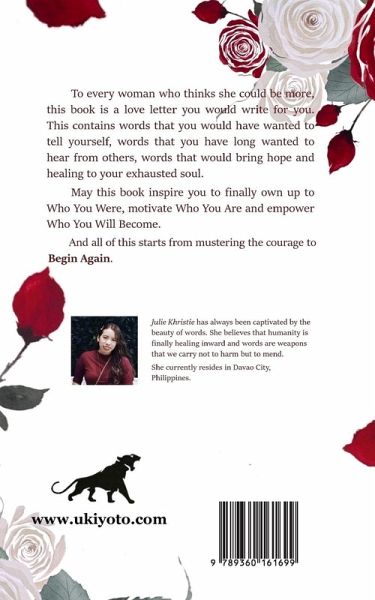"Have you ever wished for a time machine to carry you back into your past and alter specific moments that you believe would have changed the course of your life in the present and the future? But sadly, life does not work out that way. We bring with us our past wherever we go, and often we let who we were dictate the person who we will become. This book is a love letter you would write for you. This contains words that you would have wanted to tell yourself, words that you have long wanted to hear from others, words that would bring hope and healing to your exhausted soul. May this book inspire you to finally own up to Who You Were, motivate Who You Are and empower Who You Will Become. And all of this start from mustering the courage to Begin Again. "