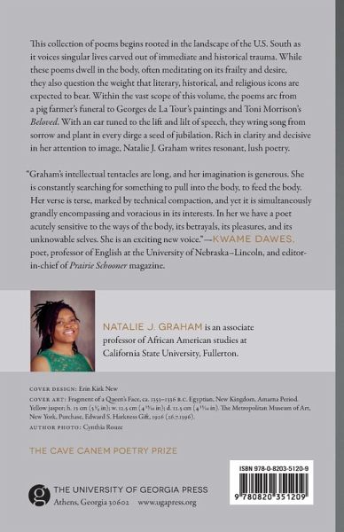 This collection of poems begins rooted in the landscape of the U.S. South as it voices singular lives carved out of immediate and historical trauma. While these poems dwell in the body, often meditating on its frailty and desire, they also question the weight that literary, historical, and religious icons are expected to bear. Within the vast scope of this volume, the poems arc from a pig farmer's funeral to Georges de la Tour's paintings and Toni Morrison's Beloved. With an ear tuned to the lift and lilt of speech, they wring song from sorrow and plant in every dirge a seed of jubilation. Rich in clarity and decisive in her attention to image, Natalie J. Graham writes resonant, lush poetry.