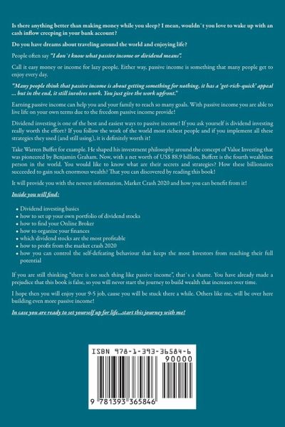 Is there anything better than making money while you sleep? I mean, wouldn`t you love to wake up with an cash inflow creeping in your bank account? Do you have dreams about traveling around the world and enjoying life? People often say "I don`t know what passive income or dividend means". Call it easy money or income for lazy people. Either way, passive income is something that many people get to enjoy every day! "Many people think that passive income is about getting something for nothing, it has a 'get-rich-quick' appeal … but in the end, it still involves work. You just give the work upfront." Earning passive income can help you and your family to reach so many goals. With passive income you are able to live life on your own terms due to the freedom passive income provide and Dividend investing is one of the best and easiest ways to passive income! If you ask yourself is dividend investing really worth the effort? If you follow the work of the world most richest people and if you implement all these strategies they used (and still using), it is definitely worth it! Take Warren Buffet for example. He shaped his investment philosophy around the concept of Value Investing that was pioneered by Benjamin Graham. Now, with a net worth of US$ 88.9 billion, Buffett is the fourth wealthiest person in the world. You would like to know what are their secrets and strategies? How these billionaires succeeded to gain such enormous wealth? That you can discovered by reading this book! It will provide you with the newest information, Market Crash 2020 and how you can benefit from it! Inside you will find:Dividend investing basics how to set up your own portfolio of dividend stocks how to find your Online Broker how to organize your finances which dividend stocks are the most profitable how to profit from the market crash 2020 how you can control the self-defeating behaviour that keeps the most Investors from reaching their full potential If you are still thinking "there is no such thing like passive income", that`s a shame. You have already made a prejudice that this book is false, so you will never start the journey to build wealth that increases over time. I hope then you will enjoy your 9-5 job, cause you will be stuck there a while. Others like me, will be over here building even more passive income! In case you are ready to set yourself up for life…start this journey with me! Click on"Buy Now" and Get Your Copy!