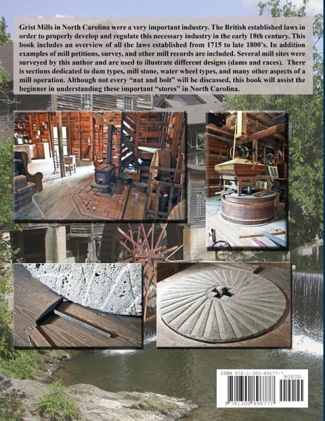This book will provide the reader with a beginning understanding about water powered grist mills in North Carolina. These mills were a very important industry. The British established laws in order to properly develop and regulate this necessary industry in the early 18th century. This book includes an overview of all the laws established from the 1700s to the late 1800s. In addition examples of actual petitions and surveys, and other mill records are included. Several mill sites have been surveyed by this author, and are used to illustrate the different designs (dams and races). Also included are actual petition documents used to illustrate the type's of records in the State Archives, as well as the laws of N.C. Finally, an appendix section includes a number of images of different mill stones found throughout this author's travel.