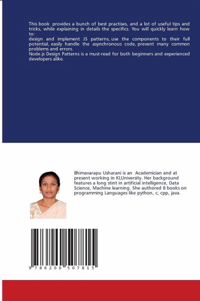This book provides a bunch of best practises, and a lot of useful tips and tricks, while explaining in details the specifics. You will quickly learn how to:design and implement JS patterns, use the components to their full potential, easily handle the asynchronous code, prevent many common problems and errors.Node.js Design Patterns is a must-read for both beginners and experienced developers alike.