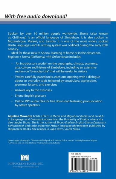 Learn Shona with this complete course, now with free audio download! Spoken by over 10 million people worldwide, Shona (also known as ChiShona) is an official language of Zimbabwe. It is also spoken in Mozambique, Malawi, and Zambia. It is one of the most widely spoken Bantu languages and its writing system was codified during the early 20th century. Ideal for those new to Shona, learning at home or in the classroom, Beginner's Shona (ChiShona) with Online Audio includes: An introductory section on the geography, climate, economy, arts, culture and history of Zimbabwe, including an extensive section on "Everyday Life" that will be useful to visitors Twelve carefully-paced units, each one opening with a dialogue about an everyday topic followed by vocabulary, expressions, grammar lessons, and exercises Answer key to the exercises Shona-English glossary Online MP3 audio files for free download featuring pronunciation by native speakers