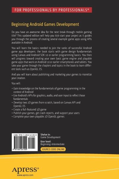 Do you have an awesome idea for the next break-through mobile gaming title? This updated edition will help you kick-start your project as it guides you through the process of creating several example game apps using APIs available in Android. You will learn the basics needed to join the ranks of successful Android game app developers. the book starts with game design fundamentals using Canvas and Android SDK 10 or earlier programming basics. You then will progress toward creating your own basic game engine and playable game apps that work on Android 10 or earlier smartphones and tablets.…mehr