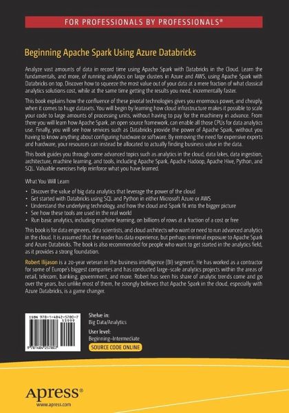 Analyze vast amounts of data in record time using Apache Spark with Databricks in the Cloud. Learn the fundamentals, and more, of running analytics on large clusters in Azure and AWS, using Apache Spark with Databricks on top. Discover how to squeeze the most value out of your data at a mere fraction of what classical analytics solutions cost, while at the same time getting the results you need, incrementally faster.
