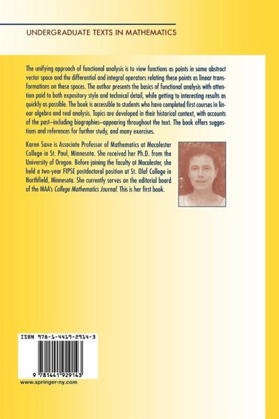 "There are really two levels to this book. First, it is an introductory text. Second, it provides a glimpse into the history of functional analysis and the personalities who developed the subject. Saxe has succeeded in presenting both of these subjects. ... This is a good book for students to learn functional analysis. It is also one that students will enjoy using and out of which they will get more than just the nuts and bolts of the topics."