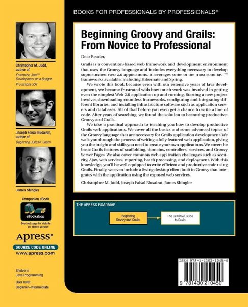 Beginning Groovy and Grails is the first introductory book on the Groovy language and its primary web framework, Grails.