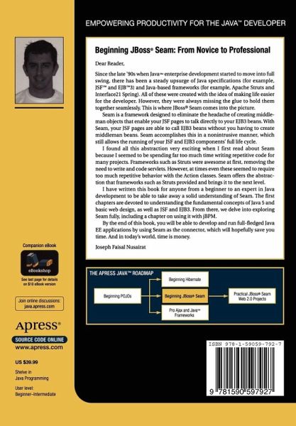 Reacting to the popularity of Java 2.0 Enterprise Edition(TM) alternatives such as Ruby on Rails and the enterprise Spring Framework, Red Hat JBoss®, Inc. developed JBoss® Seam, a new open-source lightweight Java(TM) EE 5-based contextual application development framework. Beginning JBoss® Seam: From Novice to Professional gets you started as the first book on this popular framework.
