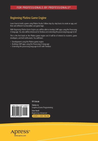 With Beginning Platino Game Engine you will be able to develop UWP apps using the Processing JS language. You also will be introduced to Temboo and extending the processing language to IoT.