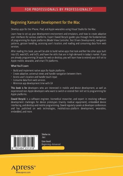 What You'll LearnBuild and implement native apps for Apple platformsCreate adaptive, universal views and handle navigation between themAccess user's location and handle touch inputConsume data from web servicesMinimize app development time with C#Who This Book Is For
