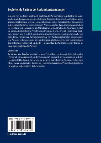 Simone von Boddien analysiert begleitende Partner als Erfolgsfaktor bei Auslandsentsendungen, die als unterstützende Ressource für die Entsandten fungieren, aber auch selbst zum Stressor werden können. Dabei berücksichtigt die Autorin insbesondere Spillover- und Crossover-Prozesse, die für das Anpassungsgeschehen im Gastland von Relevanz sind. Mittels eines Mixed Methods-Ansatzes arbeitet sie auf qualitativer Ebene Probleme und Coping-Formen von begleitenden Partnern heraus und ermittelt quantitativ mit einem Strukturgleichungsmodell, wie begleitende Partner den Entsendungserfolg von Auslandsentsandten beeinflussen. Die Autorin leitet daraus neue Handlungsempfehlungen für die Verbesserung des Entsendeprozesses ab und gibt Hinweise für die Global Mobility Praxis in Bezug auf begleitende Partner.