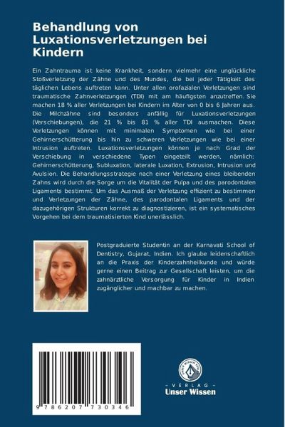 Ein Zahntrauma ist keine Krankheit, sondern vielmehr eine unglückliche Stoßverletzung der Zähne und des Mundes, die bei jeder Tätigkeit des täglichen Lebens auftreten kann. Unter allen orofazialen Verletzungen sind traumatische Zahnverletzungen (TDI) mit am häufigsten anzutreffen. Sie machen 18 % aller Verletzungen bei Kindern im Alter von 0 bis 6 Jahren aus. Die Milchzähne sind besonders anfällig für Luxationsverletzungen (Verschiebungen), die 21 % bis 81 % aller TDI ausmachen. Diese Verletzungen können mit minimalen Symptomen wie bei einer Gehirnerschütterung bis hin zu schweren Verletzungen wie bei einer Intrusion auftreten. Luxationsverletzungen können je nach Grad der Verschiebung in verschiedene Typen eingeteilt werden, nämlich: Gehirnerschütterung, Subluxation, laterale Luxation, Extrusion, Intrusion und Avulsion. Die Behandlungsstrategie nach einer Verletzung eines bleibenden Zahns wird durch die Sorge um die Vitalität der Pulpa und des parodontalen Ligaments bestimmt. Umdas Ausmaß der Verletzung effizient zu bestimmen und Verletzungen der Zähne, des parodontalen Ligaments und der dazugehörigen Strukturen korrekt zu diagnostizieren, ist ein systematisches Vorgehen bei dem traumatisierten Kind unerlässlich.