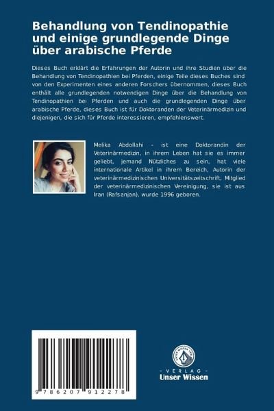 Dieses Buch erklärt die Erfahrungen der Autorin und ihre Studien über die Behandlung von Tendinopathien bei Pferden, einige Teile dieses Buches sind von den Experimenten eines anderen Forschers übernommen, dieses Buch enthält alle grundlegenden notwendigen Dinge über die Behandlung von Tendinopathien bei Pferden und auch die grundlegenden Dinge über arabische Pferde, dieses Buch ist für Doktoranden der Veterinärmedizin und diejenigen, die sich für Pferde interessieren, empfehlenswert.