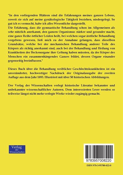 Dieses Buch über die Behandlung weiblicher Geschlechtskrankheiten ist ein unveränderter, hochwertiger Nachdruck der Originalausgabe der zweiten Auflage aus demJahr 1893. Illustriert mit über 50 historischen Abbildungen.