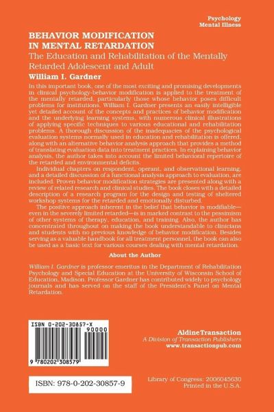 In this important book, one of the most exciting and promising developments in clinical psychology-behavior modification is applied to the treatment of the mentally retarded, particularly those whose behavior poses difficult problems for institutions. Professor Gardner presents an easily intelligible yet detailed account of the concepts and practices of behavior modification and the underlying learning systems, with numerous clinical illustrations of applying specific techniques to various educational and rehabilitation problems. A thorough discussion of the inadequacies of the psychological evaluation systems normally used in education and rehabilitation is offered, along with an alternative behavior analysis approach that provides a method of translating evaluation data into treatment practices. In explaining behavior analysis, the author takes into account the limited behavioral repertoire of the retarded and environmental deficits. Individual chapters on respondent, operant, and observational learning, and a detailed discussion of a functional analysis approach to evaluation, are included. Proven behavior modification strategies are presented along with a review of related research and clinical studies. The book closes with a detailed description of a research program for the design and testing of sheltered workshop systems for the retarded and emotionally disturbed. The positive approach inherent in the belief that behavior is modifiable-even in the severely limited retarded-is in marked contrast to the pessimism of other systems of therapy, education, and training. Also, the author has concentrated throughout on making the book understandable to clinicians and students with no previous knowledge of behavior modification. Besides serving as a valuable handbook for all treatment personnel, the book can also be used as a basic text for various courses dealing with mental retardation.
