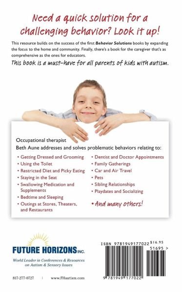 Behavior Solutions for the Home is a tool for parents whose children's behaviors are impeding their daily life. Once they see a particular behavior, parents can quickly look up an in-the-moment solution and read more about what could be causing that behavior--and more importantly, how to overcome it. This helpful book is intended to provide general, practical solutions for busy (and often overwhelmed) parents who can benefit from a handy reference guide to help them address common behaviors at home and in the community. This book is a must-have for every parent and caregiver working with a child on the autism spectrum!