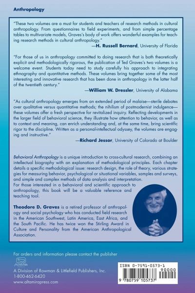 Chapter 1 Introduction Chapter 2 1: What is Behavioral Anthropology? Chapter 3 2: Becoming a Behavioral Anthropologist Chapter 4 3: Measuring Behavior Chapter 5 4: Simple Data Analysis Chapter 6 5: Research Design Chapter 7 6: Measuring Psychological Variables Chapter 8 7: Social Channeling Behavior Chapter 9 8: Samples and Surveys Chapter 10 9: Direct Observations of Behavior Chapter 11 10: A Different Kind of Ethnography Chapter 12 11: Interplay between Theory and Research Chapter 13 12: Multivariate Analysis and Causal Inferences Chapter 14 13: Research and Application Chapter 15 14: Anthropology in the Twenty-First Century Chapter 16 Appendix A: Navajo Urban Relocation Research Survey Questionnaire Chapter 17 Appendix B: A Test of Need-Achievement for Young Male Navajo Indians, Scoring Manual