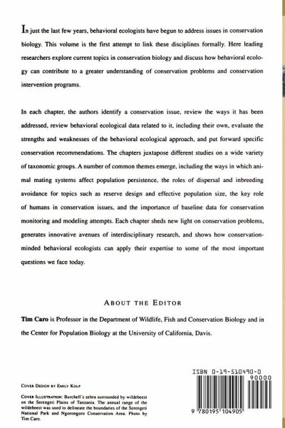 In just the last few years, behavioral ecologists have begun to address issues in conservation biology. This volume is the first attempt to link these disciplines formally. Here leading researchers explore current topics in conservation biology and discuss how behavioral ecology can contribute to a greater understanding of conservation problems and conservation intervention programs. In each chapter, the authors identify a conservation issue, review the ways it has been addressed, review behavioral ecological data related to it, including their own, evaluate the strengths and weaknesses of the behavioral ecological approach, and put forward specific conservation recommendations. The chapters juxtapose different studies on a wide variety of taxonomic groups. A number of common themes emerge, including the ways in which animal mating systems affect population persistence, the roles of dispersal and inbreeding avoidance for topics such as reserve design and effective population size, the key role of humans in conservation issues, and the importance of baseline data for conservation monitoring and modeling attempts. Each chapter sheds new light on conservation problems, generates innovative avenues of interdisciplinary research, and shows how conservation-minded behavioral ecologists can apply their expertise to some of the most important questions we face today.