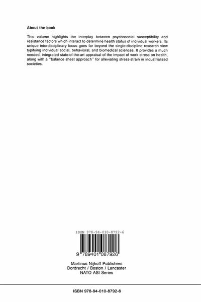 `It provides a much needed, integrated state-of-the-art appraisal of the impact of work stress on health, along with a `balance sheet approach' for alleviating stress-strain in industrialized societies.' IDIS (1997)