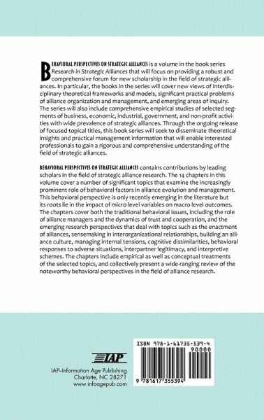 A volume in Research in Strategic Alliances Series Editor T. K. Das, City University of New York Behavioral Perspectives on Strategic Alliances is a volume in the book series Research in Strategic Alliances that will focus on providing a robust and comprehensive forum for new scholarship in the field of strategic alliances. In particular, the books in the series will cover new views of interdisciplinary theoretical frameworks and models, significant practical problems of alliance organization and management, and emerging areas of inquiry. The series will also include comprehensive empirical studies of selected segments of business, economic, industrial, government, and non-profit activities with wide prevalence of strategic alliances. Through the ongoing release of focused topical titles, this book series will seek to disseminate theoretical insights and practical management information that will enable interested professionals to gain a rigorous and comprehensive understanding of the field of strategic alliances. Behavioral Perspectives on Strategic Alliances contains contributions by leading scholars in the field of strategic alliance research. The 14 chapters in this volume cover a number of significant topics that examine the increasingly prominent role of behavioral factors in alliance evolution and management. This behavioral perspective is only recently emerging in the literature but its roots lie in the impact of micro level variables on macro level outcomes. The chapters cover both the traditional behavioral issues, including the role of alliance managers and the dynamics of trust and cooperation, and the emerging research perspectives that deal with topics such as the enactment of alliances, sensemaking in interorganizational relationships, building an alliance culture, managing internal tensions, cognitive dissimilarities, behavioral responses to adverse situations, interpartner legitimacy, and interpretive schemes. The chapters include empirical as well as conceptual treatments of the selected topics, and collectively present a wide-ranging review of the noteworthy behavioral perspectives in the field of alliance research.